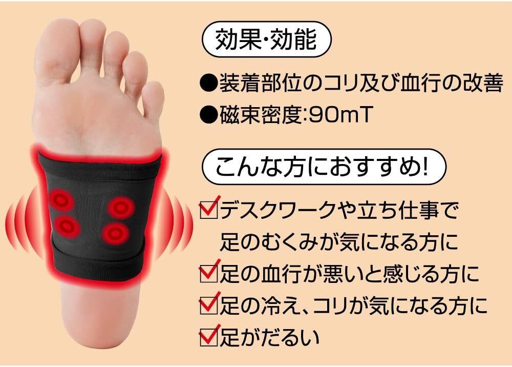 | ● 睡眠時套於腳上,磁石在腳底位置 ● 可每晚使用 |