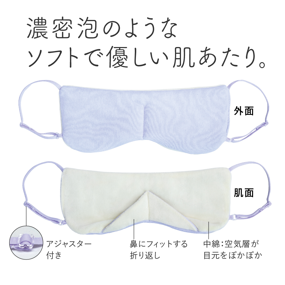 ● 粉樸的質感和厚度,軟棉棉的,觸肌感覺柔軟舒服 ● 柔和質感減少跟皮膚磨擦,不刺激 ● 鼻位貼合剪裁,增加舒適感和更貼臉 ● 內層留有空氣層,不焗束而又有防止水份流失,長期使用可延緩眼部細紋出現 ● 彈性耳帶可調節鬆緊 ● 可水洗