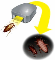 專為室外而設計的蟑螂防禦品,有效阻止外面的蟑螂潛入屋內。外面的蟑螂被家中食物或雜物氣味吸引而闖入屋內,退治盒有放作中途阻隔,在路徑上作強力誘惑,吸引蟑螂於退治盒取食,食後於屋外死亡。每個覆蓋範圍約10尺,只有效於在入侵路徑上的蟑螂,不會吸引遠處的蟑螂。防水外殼及底部黏貼,置放室外耐雨抗風。