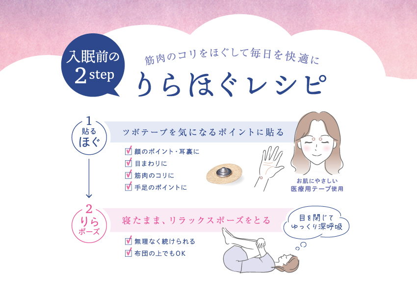 | ● 產品包含一本小冊子,圖示提供專業的貼布和舒適肌肉伸展姿勢指引 ● 睡前最少15分鐘,將貼布貼於穴位、淋巴位置,於床上做簡單的肌肉伸展動作,睡前撕走貼布(如有需要可貼著睡覺至早上起床才撕走) ● 每片貼布可使用至貼力減低後更換 ● 日間活動不建議使用 |