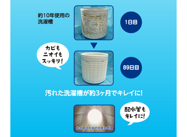 ● 每天洗衣時將附著在洗衣槽內和去水管的黴菌去除 ● 抑制洗衣機雜箘的繁殖 ● 天然殺菌,不含有害化學物 ● 嬰兒衣物亦安心使用 ● 無色無味